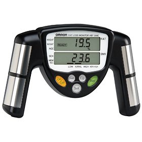 Measurement of body fat composition is the key to long-term exercise success. The Omron hand held body fat analyzer is an affordable and easy way to measure body fat in the privacy of your own home. After inputting the data, a measurement can be started by simply holding the grip electrodes and pressing the START button.
